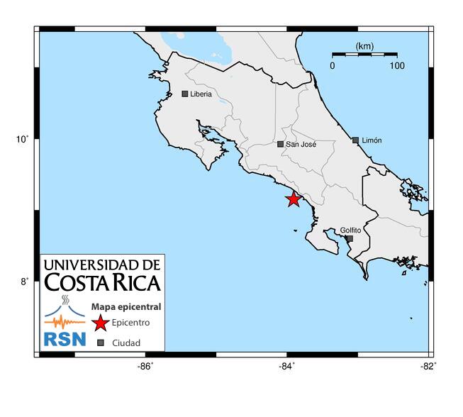 Intensidades: Sentido en el Pacífico Central yleve en algunos sectores del Valle Central.